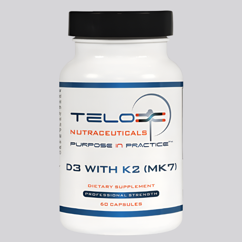 D3 with K2 (MK7) by Telos Nutraceuticals provides a potent combination of vitamin D3 and vitamin K2 (MK7) to support bone and cardiovascular health. This advanced formula enhances calcium utilization, promotes healthy blood circulation, and boosts immune function.