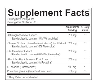 - Chinese Skullcap Root Extract (Standardized to contain 30% Flavonoids): 250 mg *