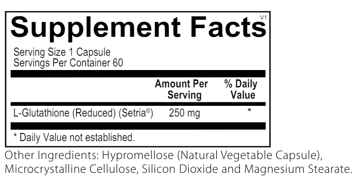 - L-Glutathione (Reduced) (Setria®): 250 mg