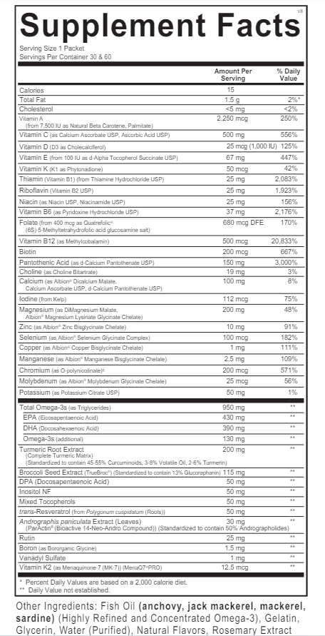 Comprehensive Nutrient Support: Total Nutrition Packs include a blend of key ingredients to support overall health: